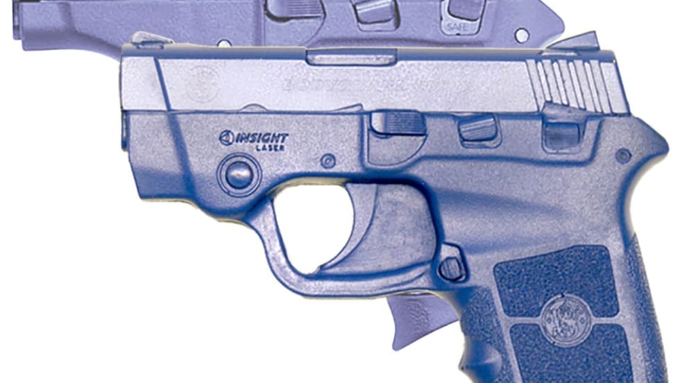 Ring's Manufacturing's Smith & Wesson M&P Bodyguard 380 Bluegun replica is a 1:1 exact replica of the original and is molded from solid blue polyurethane to differentiate it from a live weapon.