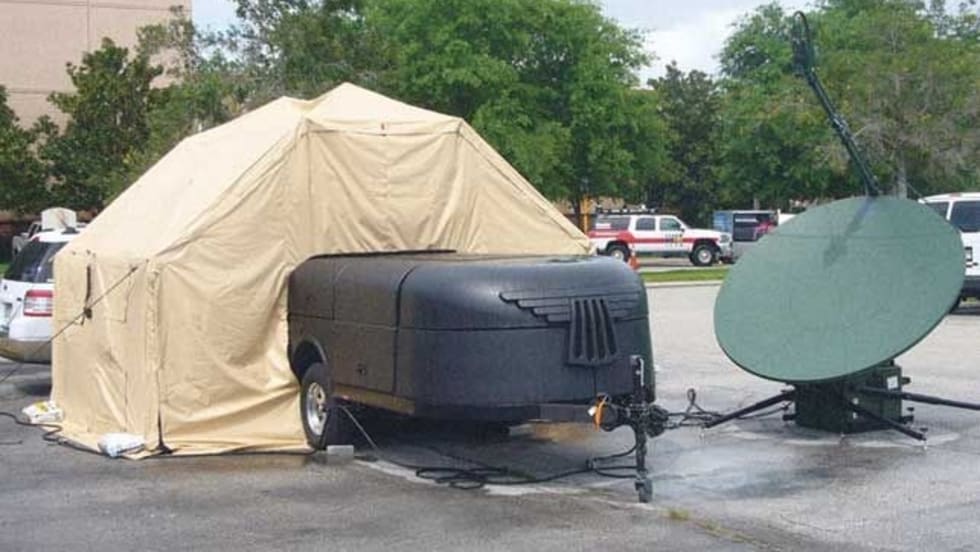 With its military pedigree, Reeves' Incident Command Post (ICP) is built to meet military standard requirements for rain, wind, temperature, durability, blackout, and snowload. This generator-powered towed trailer pops out into a soft-walled shelter to serve as a portable command center on the fly.