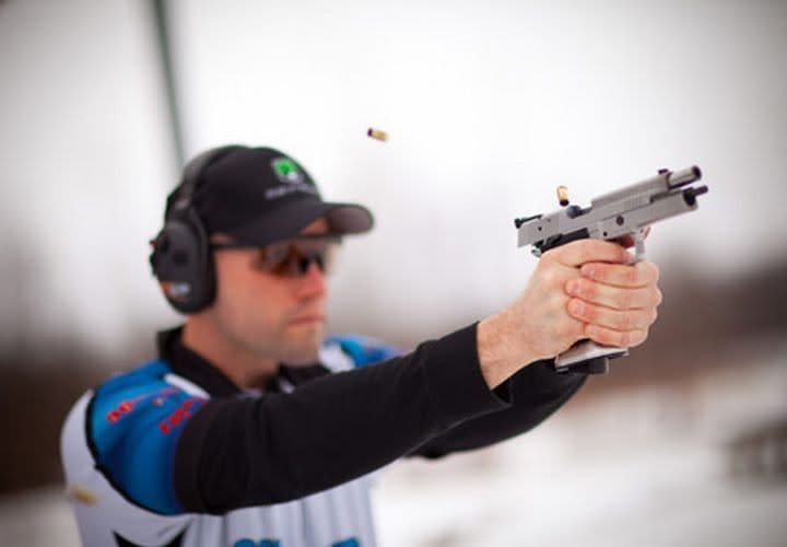 Read More →Rob Letham, a competitive shooter sponsored by Springfield, demonstrates "El Presidente," a pistol-range drill. The shooter fires two shots apiece at three targets 10 meters away, then reloads and fires another six shots at the three targets. The drill, which was developed by Jeff Cooper in the 1970s, tests drawing and reloading.