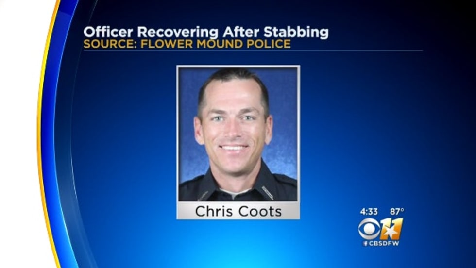 A shoplifting suspect stabbed a Flower Mound, TX, police officer in the face when the officer chased him down. The suspect is now in custody and the officer is recovering at home.