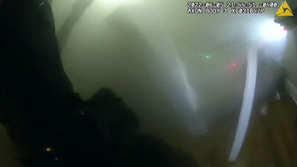 Once located, police say the woman repeatedly pled for the officers to kill her. Officers were able to restrain her and carry her to safety, outside the home.