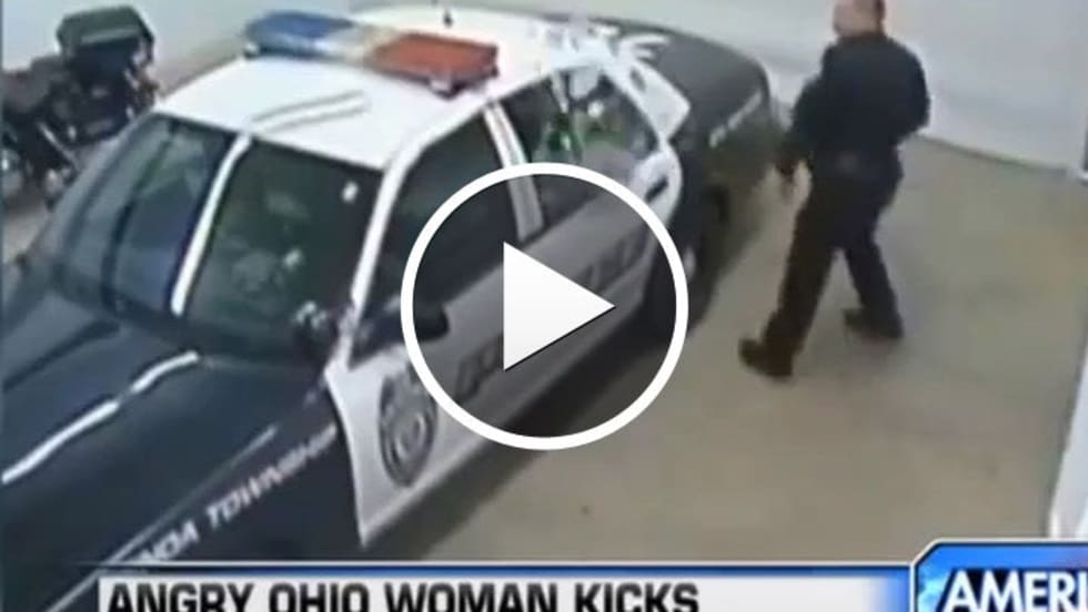 An intoxicated Ohio woman is facing felony charges after she kicked out the window of a Genoa Township Police cruiser, showering an officer with glass.