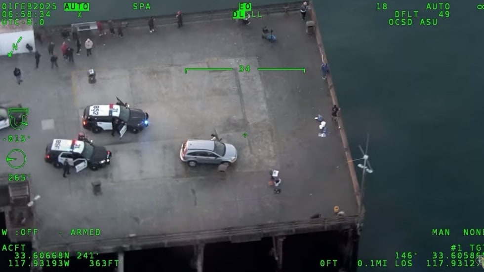 The suspect drove his vehicle onto the pier, which is a no drive zone. Police vehicles followed him to the end of the pier and parked.