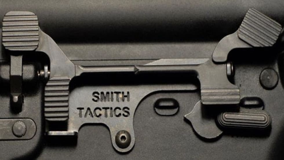 Smith Tactics offers three products for mil-spec AR-15 platforms: the Battle-Bar (an extended bolt catch release), the Lightning Bolt (an automatic bolt release), and the Illuminator (an LED-lit sight).