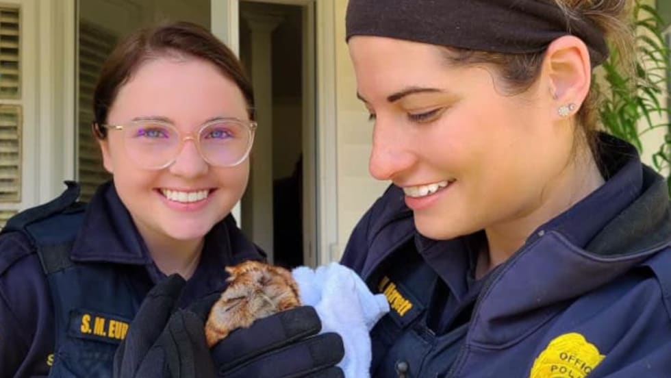 The owl named "Steve" by the responding officers—Officer Hargett and Officer Eubanks—flew into the home through an open garage door.
