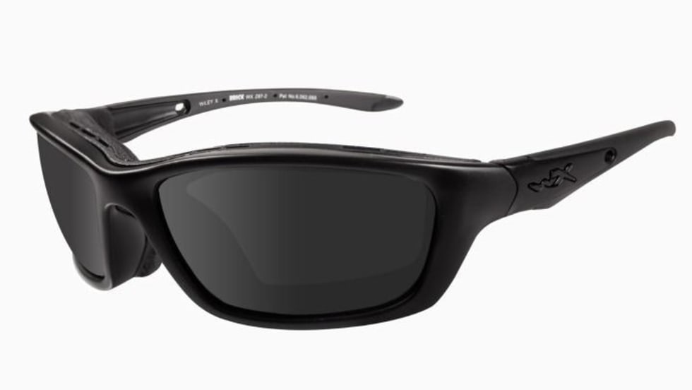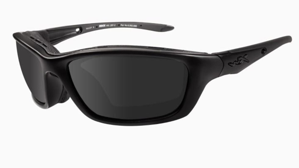 Part of the Wiley X new Black Ops Collection of eyewear, the Brick model is certified to exceed ANSI Z87.1-2003 high-velocity and high-mass impact standards with matte black Triloid nylon frames and sleek grey lenses made from Selenite Polycarbonate.
