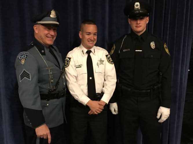 Jamestown, RI, police Officer Ryan Bourque had just gotten off the night shift and was driving home early Monday morning when his Dodge Charger was hit by another vehicle head-on.