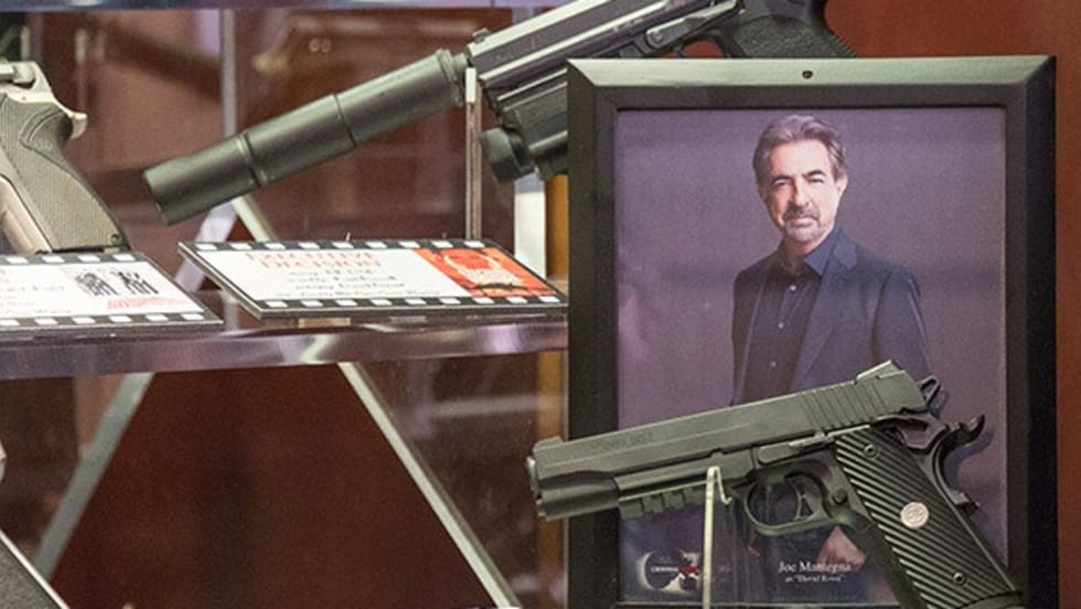 At the grand re-opening of the National Firearms Museum's Hollywood Gun Exhibit, Criminal Minds star Joe Mantegna officially placed a SIG Sauer 1911 pistol, identical to the pistol used by his character, into the exhibit.