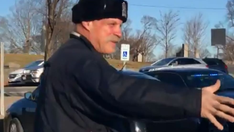 An officer retiring from the Quincy (MA) Police Department received a standing ovation from his now-former colleagues as he walked out of the agency's headquarters building.
