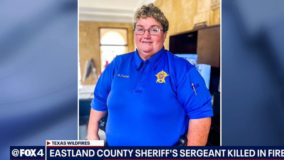 "With the extreme deteriorating conditions and low visibility from smoke, Sgt. Fenley ran off the roadway and was engulfed in the fire,” a statement from the Eastland County Sheriff’s Office says.
