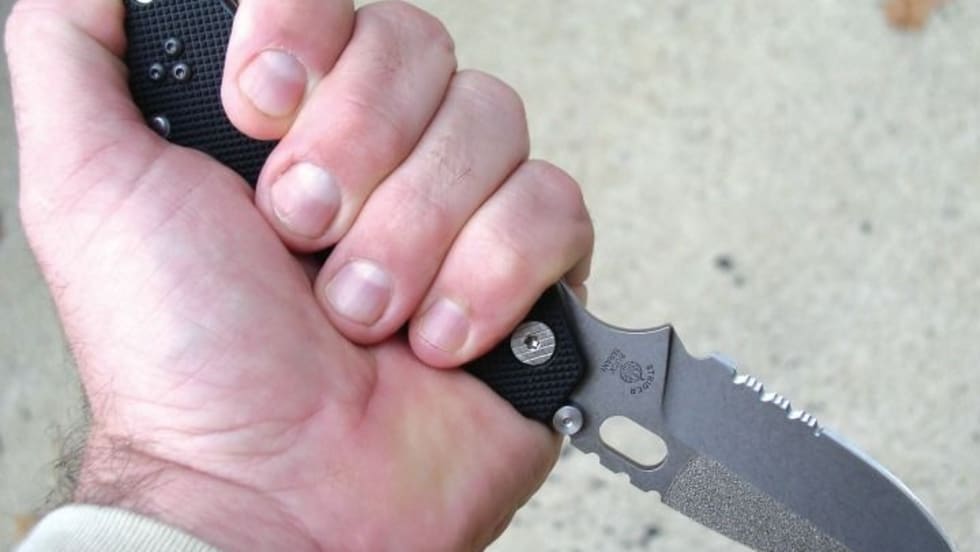 This unusual folding knife is built tough enough for daily duty and designed for close defense.
