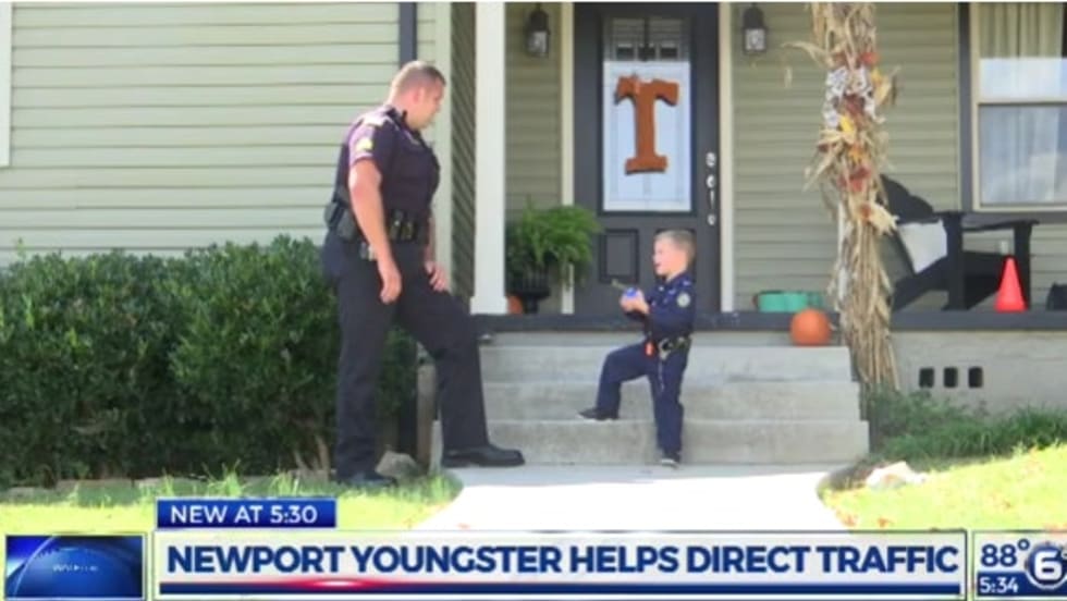 A little boy in Tennessee who lives near an elementary school has started "helping" a Newport, TN, officer direct traffic in the afternoons when school lets out.