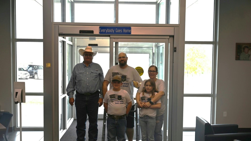 Multiple agencies came together at the Huntsville Police Department to welcome Sgt. Kyle Dockery back including the Sherriff’s Department, Emergency Medical Services, and the Fire Department.