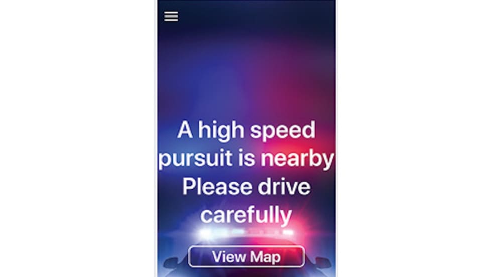 PursuitAlert is a two-part solution. The first part is the digital siren installed into the center console of a law enforcement agency’s vehicle or onto the in-vehicle computer. The second part is the app that area motorists download onto their smartphones.
