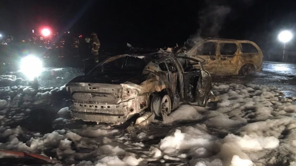 The trooper was struck head-on by another vehicle traveling south in the northbound lanes. Both vehicles caught fire.