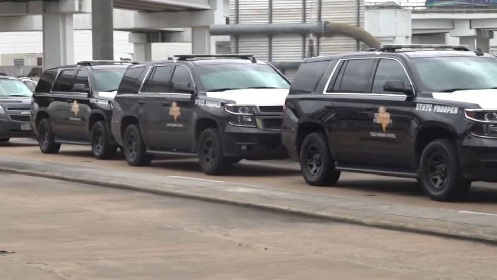Police said the Houston officer was stopped near the middle lanes with his emergency lights on. A Toyota Tundra pickup truck that was being driven by an off-duty officer with Pasadena PD was traveling westbound and struck the HPD patrol unit.