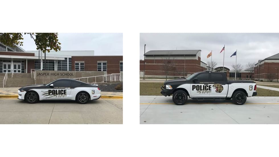 Two school resource officers with the Jasper (IN) Police Department are now outfitted with two patrol vehicles that were donated by a group of area residents who raised the money for the purchase and outfitting of the vehicles.