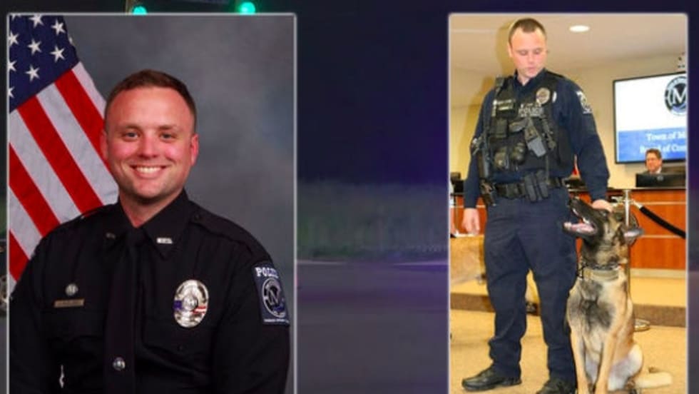 Officials said K-9 Officer Jordan Sheldon, 32, was shot and killed after pulling a man over shortly after 10 p.m.