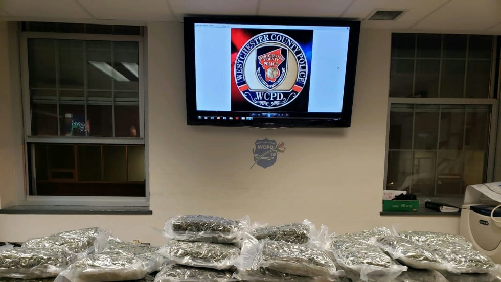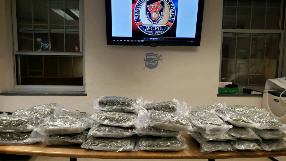 An officer with the Westchester County (NY) Police Department discovered a large haul of marijuana during a traffic stop on Wednesday, seizing about 54 pounds of the drug and arresting a Boston man for Criminal Possession of Marijuana.