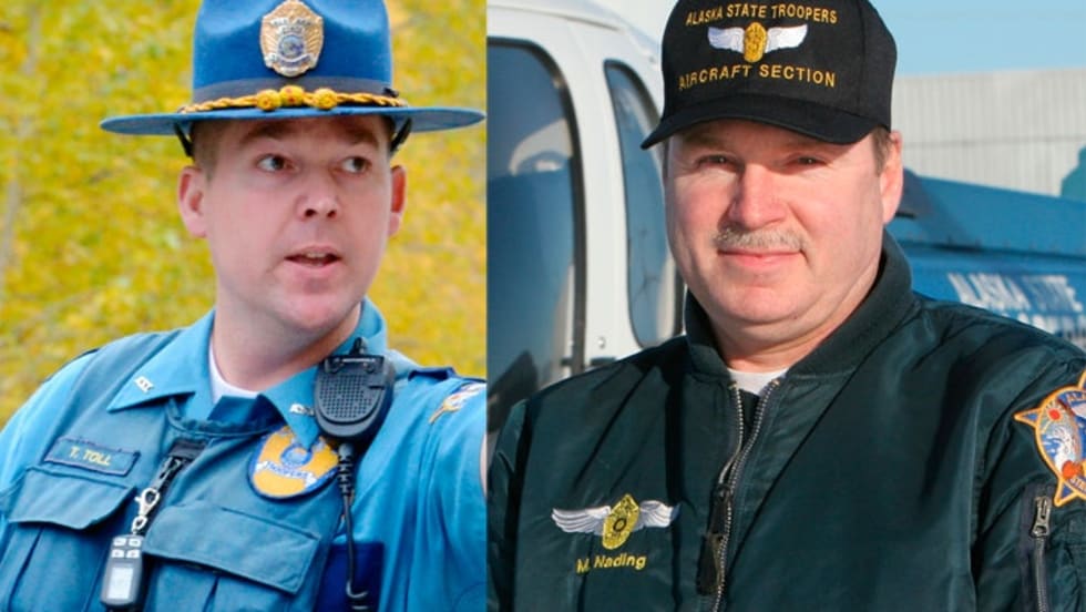 An Alaska State Trooper helicopter carrying a trooper, pilot, and snowmobile rider on a search and rescue mission went down about 100 miles north of Anchorage on Saturday evening.