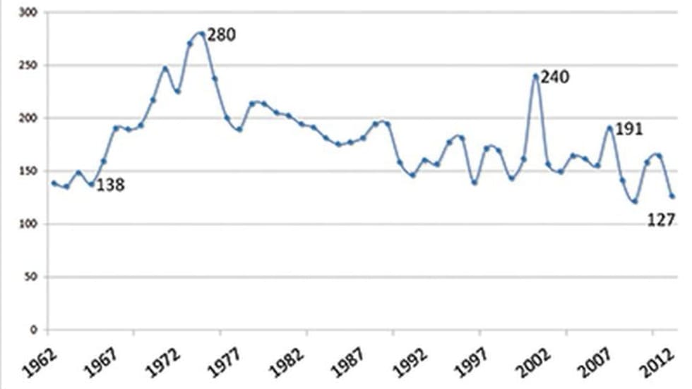 The number of law enforcement officers who died in the line of duty fell sharply in 2012, marking a year that ranks among the lowest for officer fatalities since 1960.