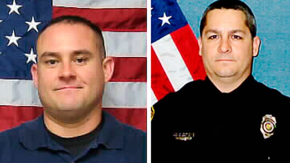 Cpl. David Gogian, 50, and Officer Jeff Atherly, 29, were shot after they responded to a report of a suspicious vehicle at a central Topeka grocery store.