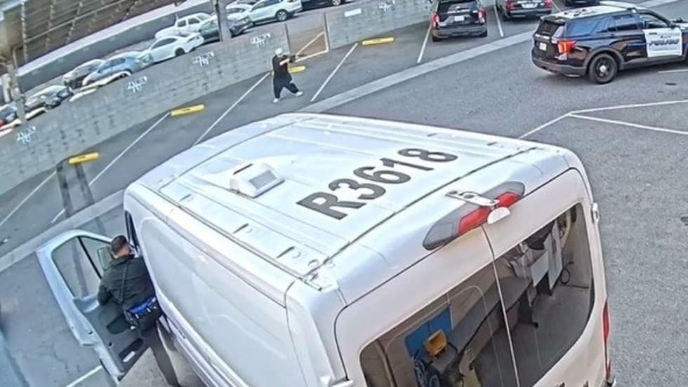According to authorities, the suspect was in a black Dodge Charger and followed a police officer unnoticed into the lot as the gate opened. He got out of his car holding an AR-style rifle.