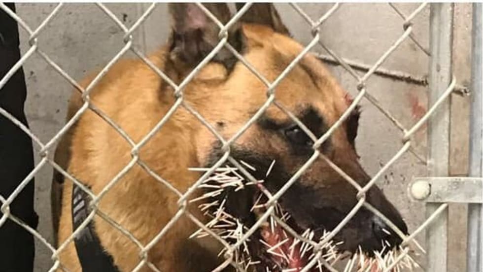 A K-9 with the Coos County (OR) Sheriff's Office suffered serious injury when it was struck by hundreds of porcupine quills during a pursuit of a wanted subject over the weekend.