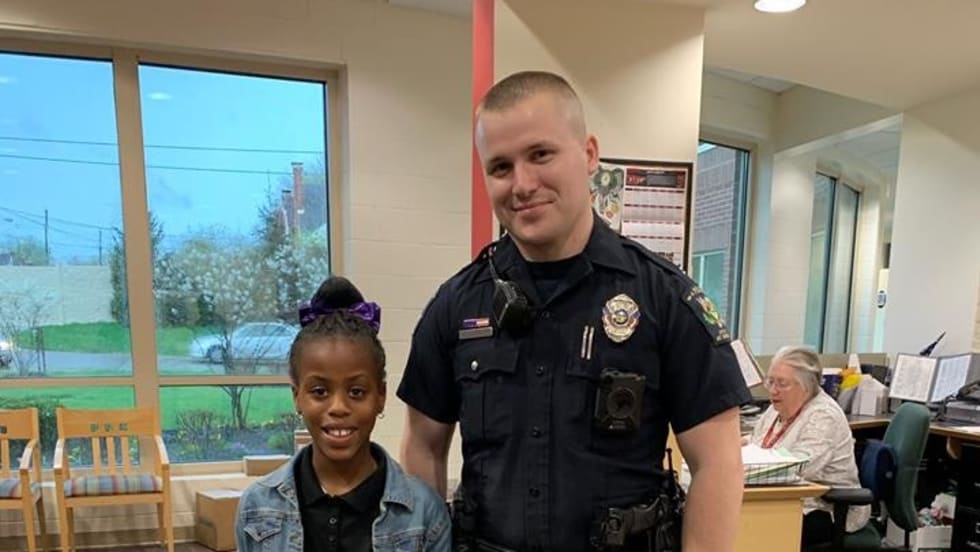 Officer Raymond Seehousen with the Mount Healthy (OH) Police Department escorted a little girl to school for the annual Father/Student day on Friday because the child's dad had recently been deployed for duty with the United States Army.
