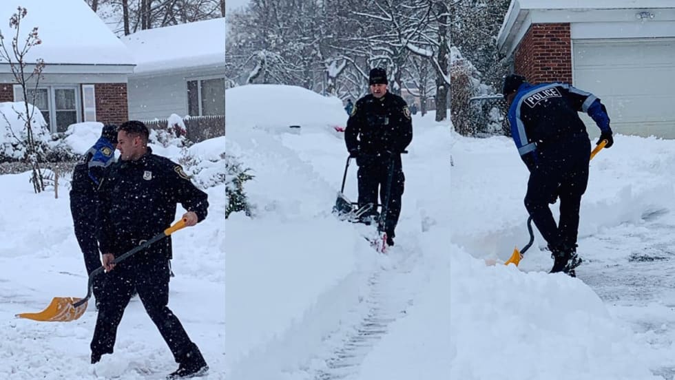 Three officers with the Albany (NY) Police Department came to the aid of a 99-year-old woman who called for help in clearing nearly 18 inches of newly fallen snow from her driveway so she could leave her home Monday morning.