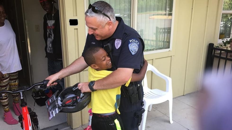 The officer, identified on the agency's Facebook page as Officer Clift, encountered the boy at Birch Creek Apartments Monday and noticed the bike he was riding was in bad shape.