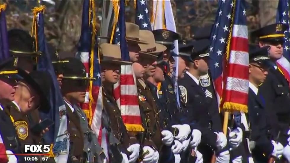 Police officers, motorcycle units, honor guards, and ceremonial rifle units all stood at attention in formation outside the Woodbridge church. Inside, more than 3,000 mourners including family, friends, colleagues, and dignitaries such as Virginia Gov. Terry McAuliffe participated in a service that lasted more than an hour.