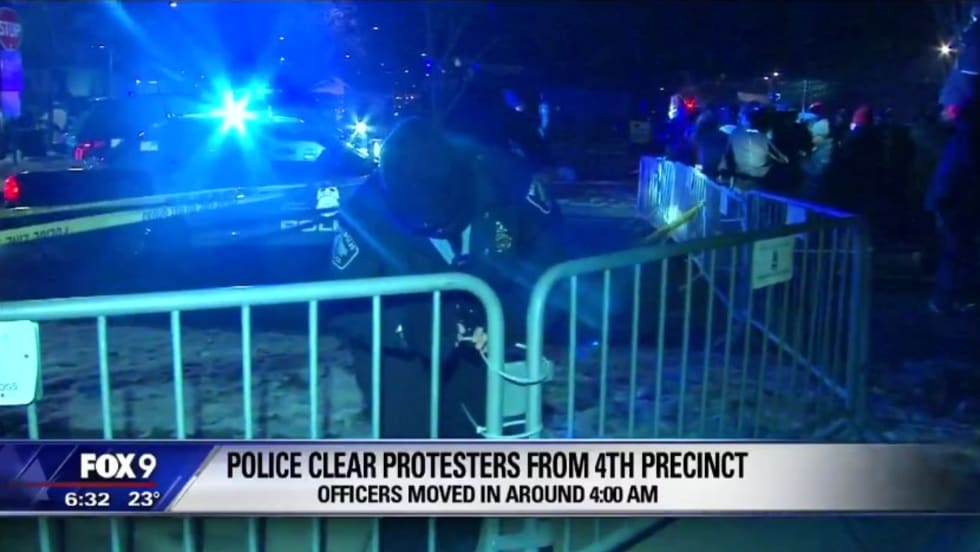 Officers handed out fliers telling the demonstrators they had 10 minutes to collect their things and leave. Following the notification, the Minneapolis Fire Department began extinguishing the protestors’ campfires with buckets of water as police and city crews hauled away items on the street.