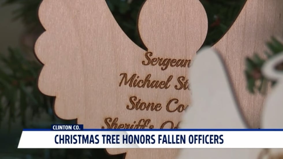 Inside the lobby of the Clinton County (IN) Sheriff's Department, the Christmas tree looks just like any other, except this one has more than 120 wooden angels, each engraved with the name of a fallen officer.