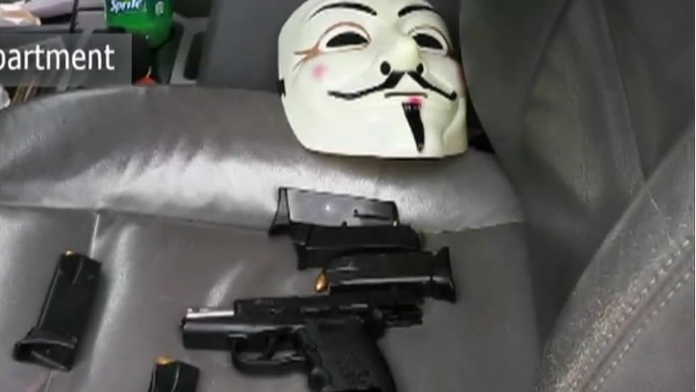 According to police sources, Adan Salazar, 22, drove up to the security checkpoint, where officers stopped to talk to him. Salazar wore a Guy Fawkes mask seen in the film and comic book "V for Vendetta," which has also been worn as a symbol for online hacktivist group Anonymous.