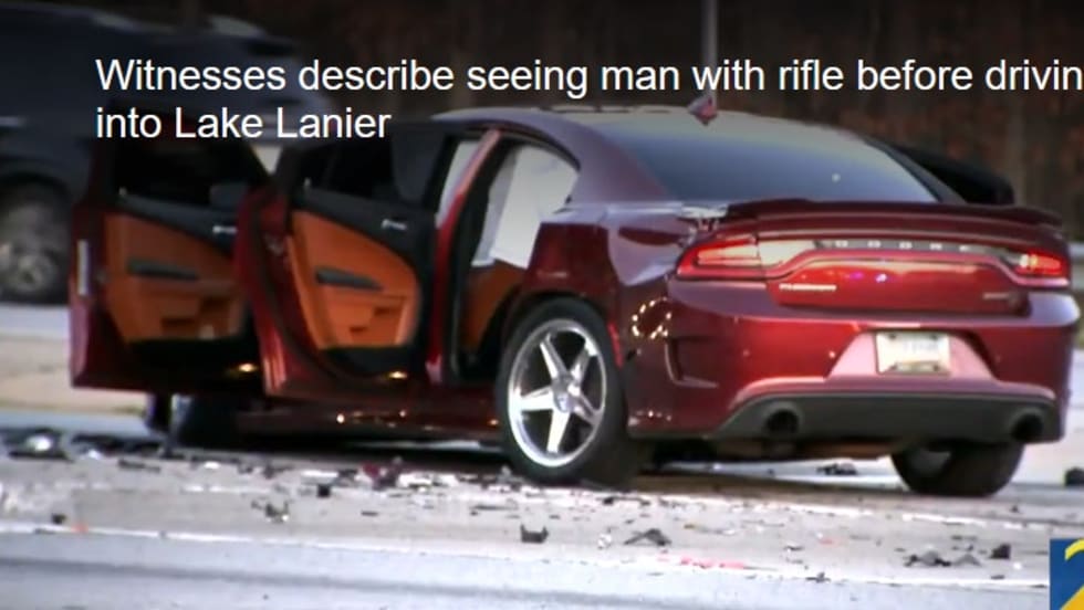 A man is dead after leading suburban Atlanta police on a wild chase that ended with him crashing into Lake Lanier in Hall County, GA, and exchanging fire with officers.
