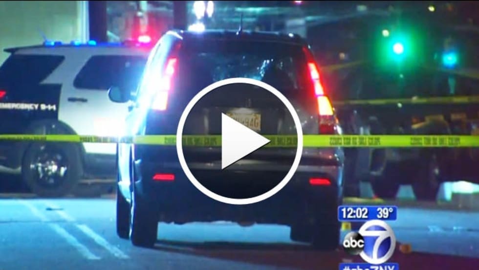 Three bullet holes were visible in the windshield of police SUV at the scene. It appears the driver's side window has also been shattered.