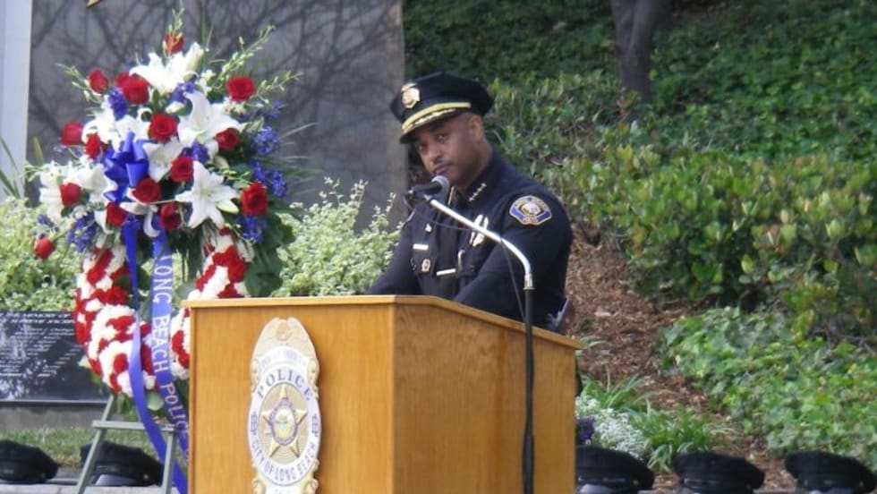 Two days after a man armed with three weapons fired on Long Beach officers during a pre-dawn gun battle, the Southern California department honored the 28 officers who have died in the line of duty.