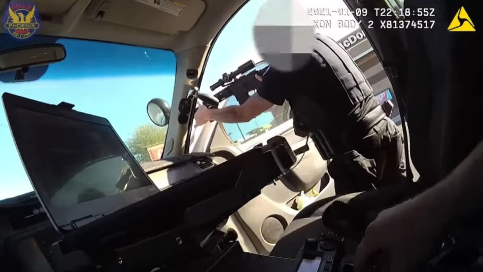 "An officer armed with his city-issued rifle shot at the suspect when he saw the suspect point the gun at the baby and others," Phoenix PD said.