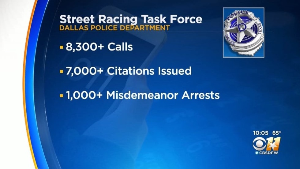 The Street Racing Task Force has answered 8,300 calls, issued more than 7,000 citations and made more than 1,000 misdemeanor and 200 felony arrests. 1,000+ vehicles have been towed.