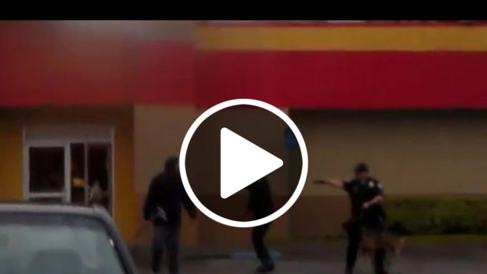 A man attempting to break into a Carl's Jr. restaruant was fatally shot by a Monterey Park (Calif.) Police officer after swinging a metal bar at the officer in a clip that has gone viral.