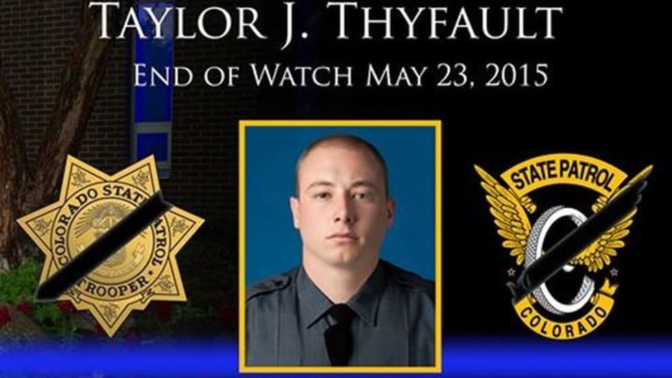 The driver accused of hitting and killing Colorado State Patrol Cadet Taylor Thyfault, 21, and injuring a trooper last month was formally charged today with 16 counts including first-degree murder and attempted murder.