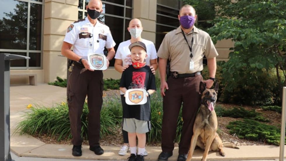 A nine-year-old boy suffering from a debilitating disease who was named an honorary sheriff's deputy by the Olmstead County Sheriff's Office earlier this year has returned to the hospital for treatment.