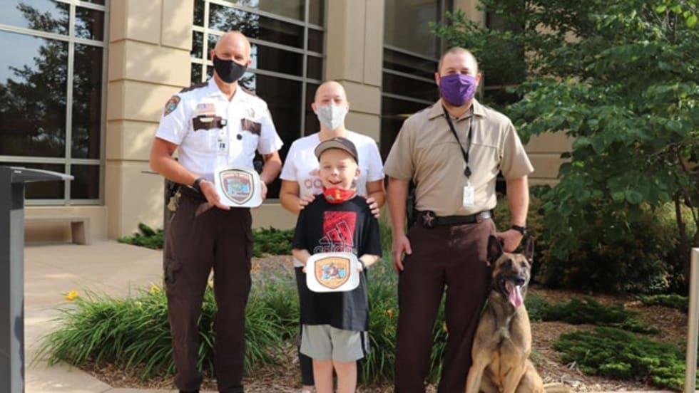 A nine-year-old boy suffering from a debilitating disease who was named an honorary sheriff's deputy by the Olmstead County Sheriff's Office earlier this year has returned to the hospital for treatment.