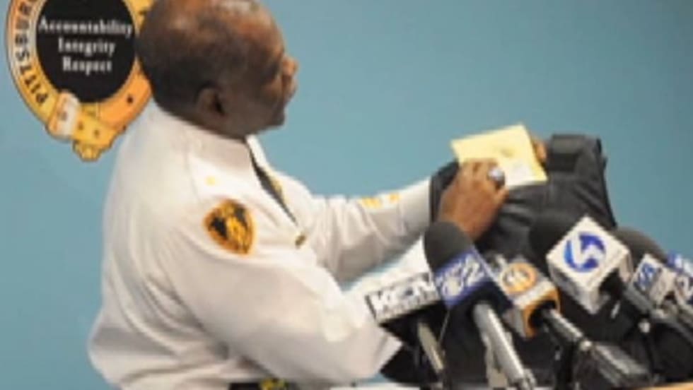 A Pittsburgh Police officer's ballistic vest saved him early Friday during a gun battle with a domestic violence suspect who had told his wife he wanted to kill a cop.