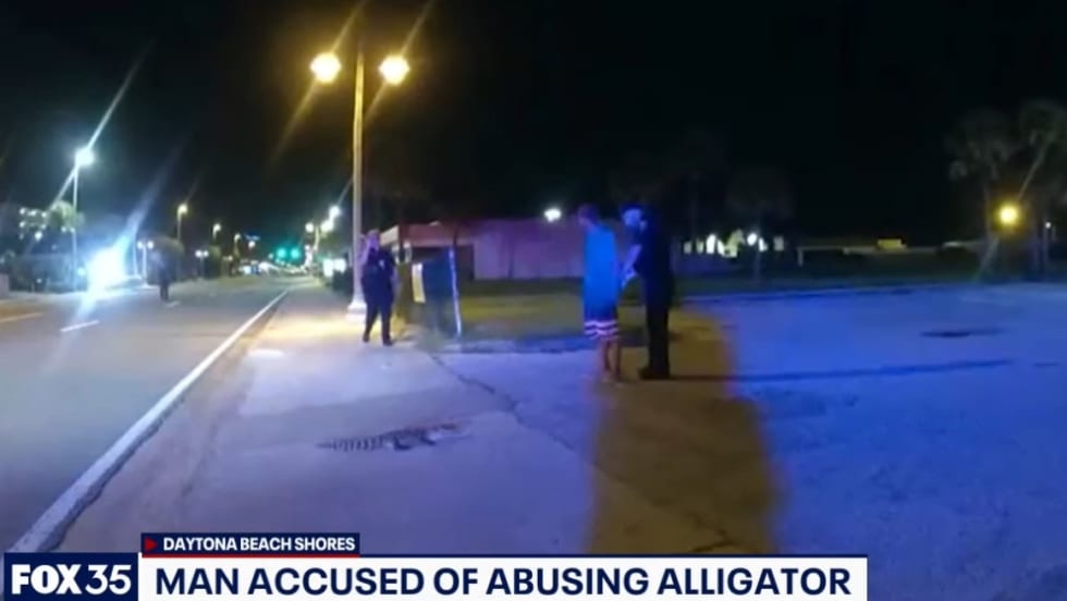 The suspect said he jumped a fence to an alligator enclosure and stole the gator, according to an arrest report. Officers said when they asked the man what he was doing when he was throwing the alligator in the air, he advised he was "teaching it a lesson."