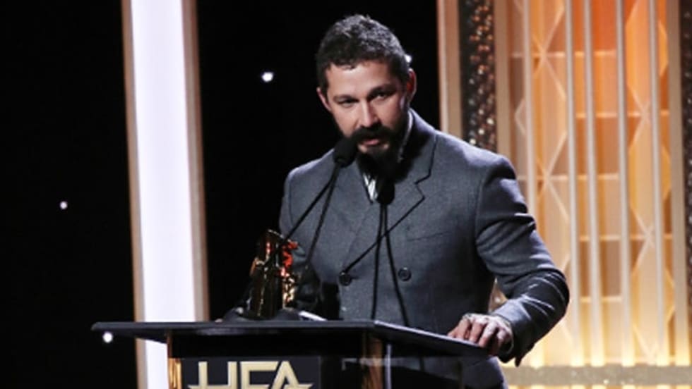 Shia LaBeouf took to the podium at to accept the Breakthrough Screenwriting Award at the Hollywood Film Awards on Sunday night and used the occasion to thank an officer with the Savannah (GA) Police Department who arrested him for helping him get his life back on track.