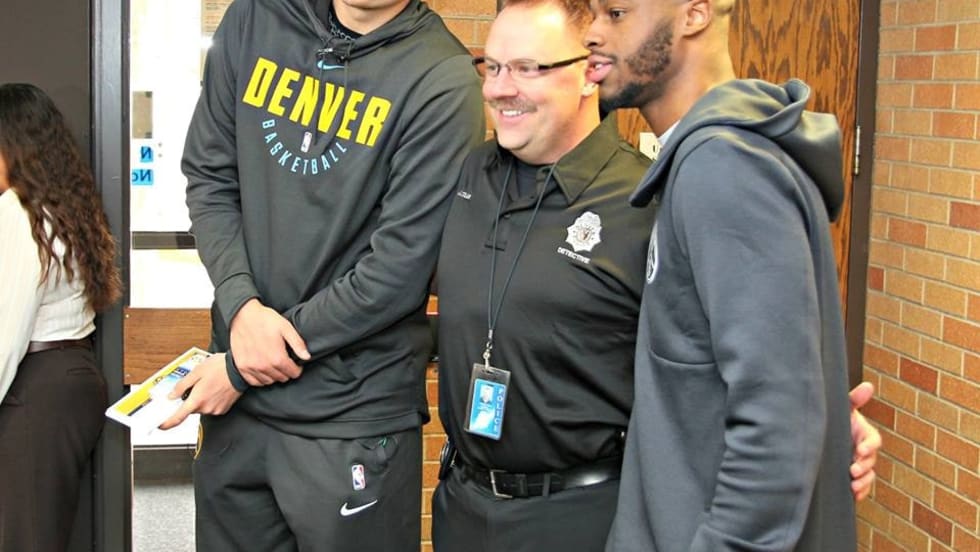 Nikola Jokic, the team's starting center, and Emmanuel Mudiay, the team's backup point guard, brought pizzas for the officers and staff.