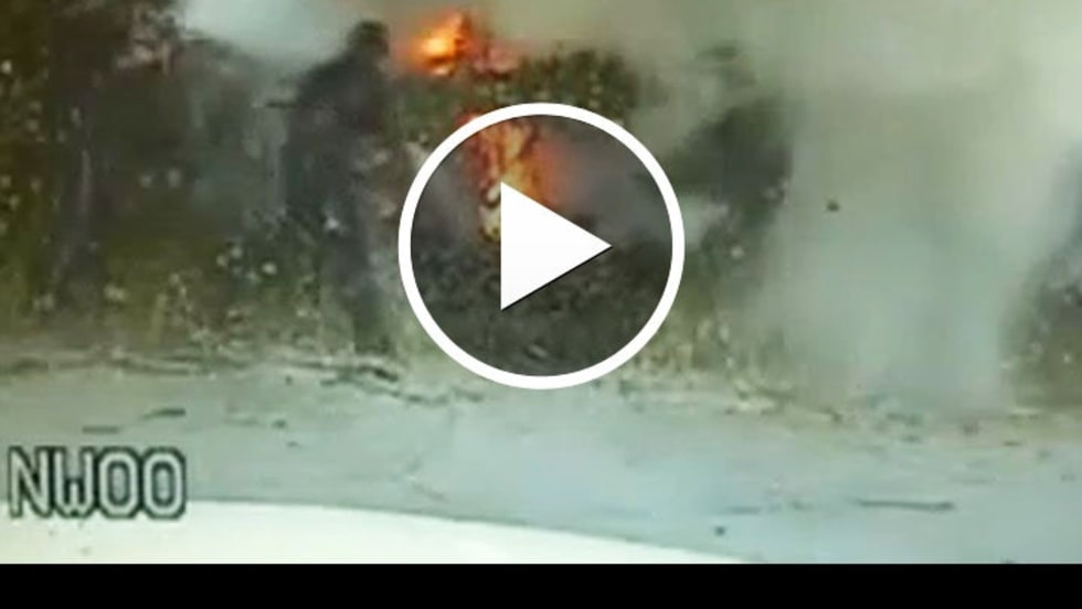 At least three North Charleston (S.C.) Police officers helped extinguish a burning vehicle Monday as a woman lay trapped inside.