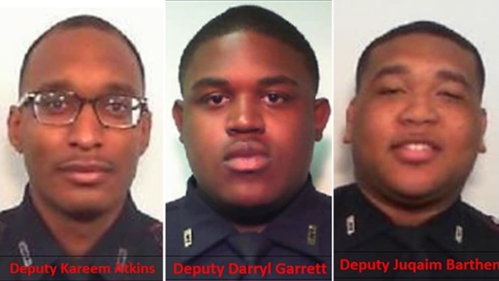 A man who authorities say ambushed two Harris County Precinct deputy constables, killing one, critically wounding another, and shooting a third as he responded to the shooting remained at large Monday.